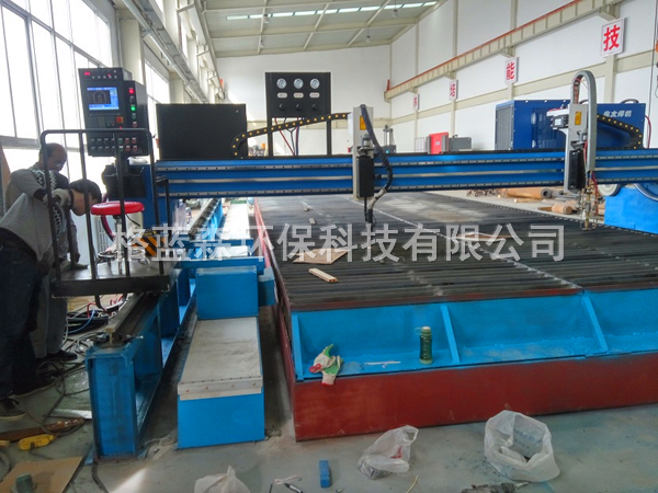 在切割平臺(tái)一側(cè)安裝方形吸風(fēng)道,吸風(fēng)道上方裝有一個(gè)可隨切割機(jī)一起移動(dòng)的滑動(dòng)吸風(fēng)小車,風(fēng)道上方鋪設(shè)密封橡皮板?;瑒?dòng)吸風(fēng)小車、切割頭安裝在切割機(jī)沿橫梁方向的同一直線上。利用切割平臺(tái)上的格柵板與被切割鋼板形成煙氣通道,切割鋼板時(shí),產(chǎn)生的切割煙塵通過(guò)該煙氣通道進(jìn)入吸風(fēng)小車吸風(fēng)口,進(jìn)入方形吸風(fēng)道,最后進(jìn)入凈化器主機(jī)進(jìn)行凈化處理。?
